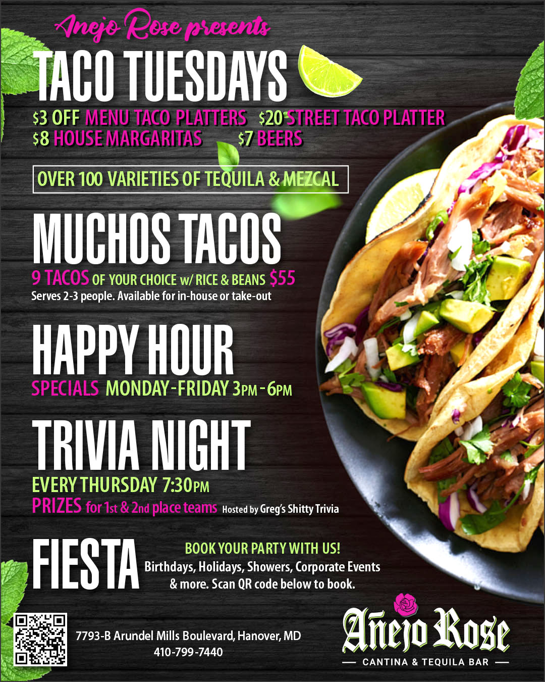 Host your next event with us at Añejo Rose. We would love to be a part of your next big celebration; whether it is a birthday or anniversary, a baby or bridal shower, an engagement party, rehearsal dinners or even a corporate event.